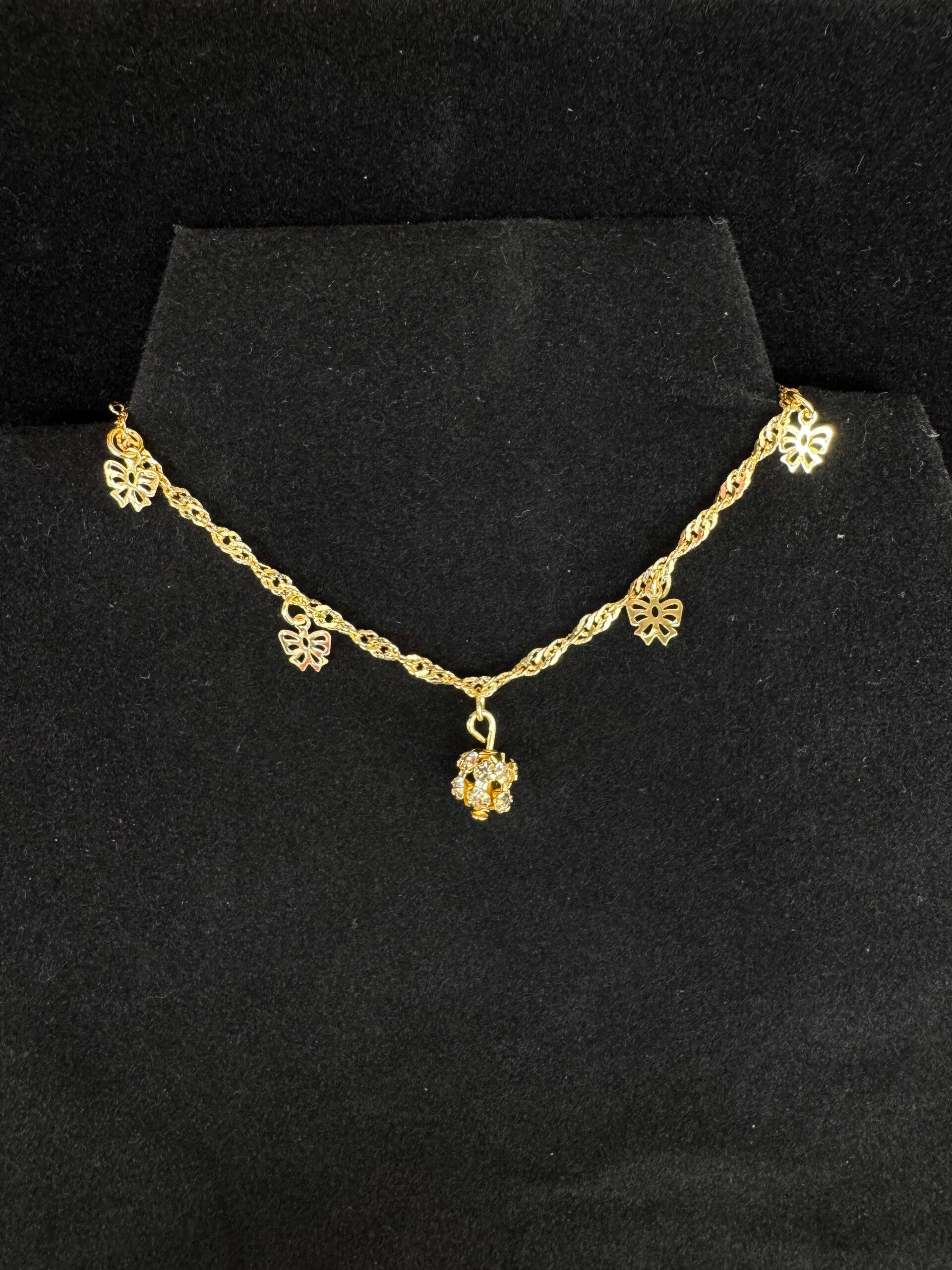 Gold plated chain with multiple pendants. Can be wore at the ankle or as a bracelet.