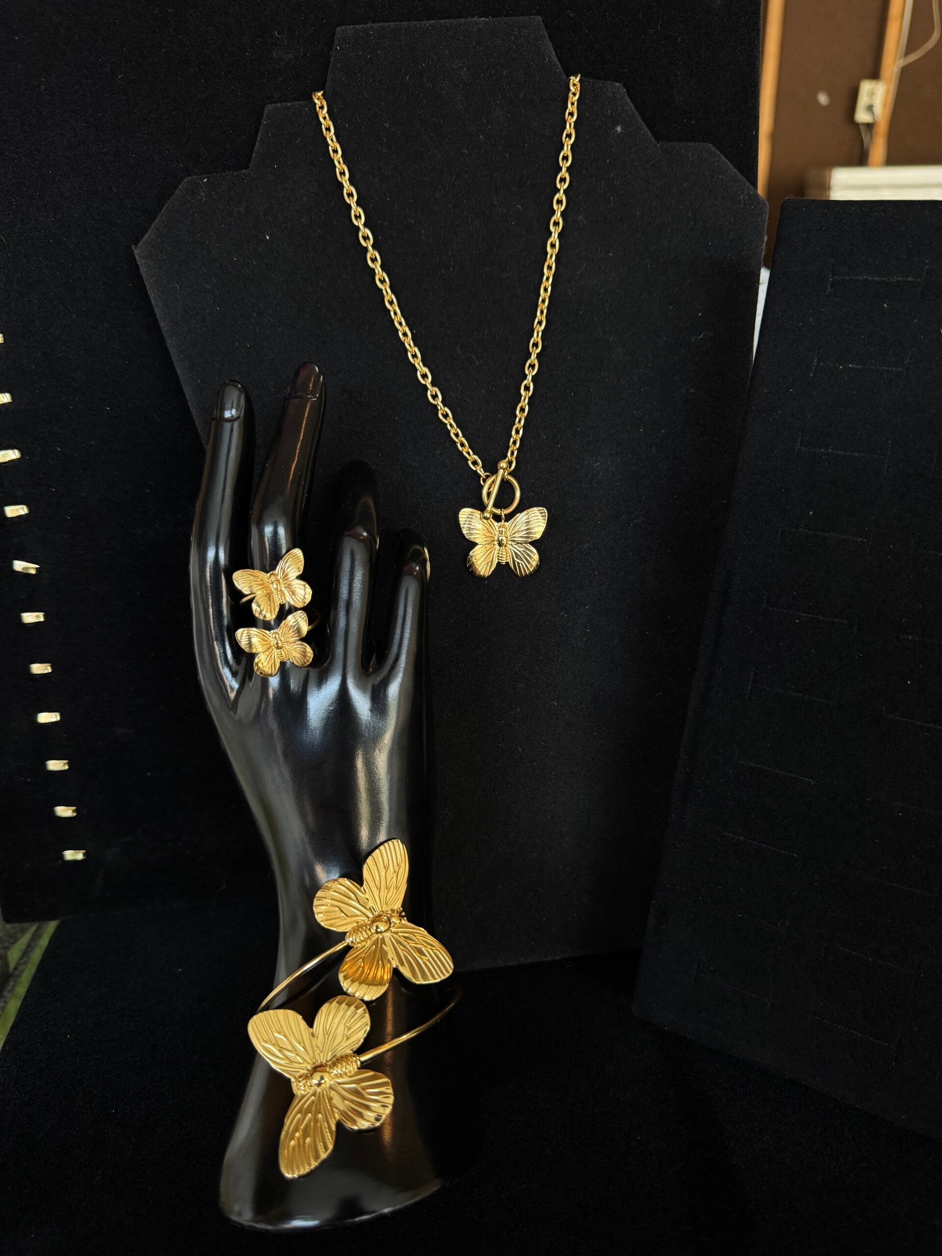 18 K Gold Plated jewels set : Chain + Bracelet + Ring.