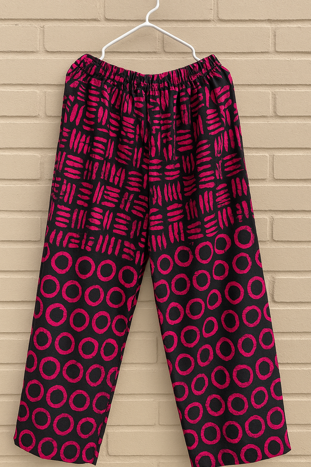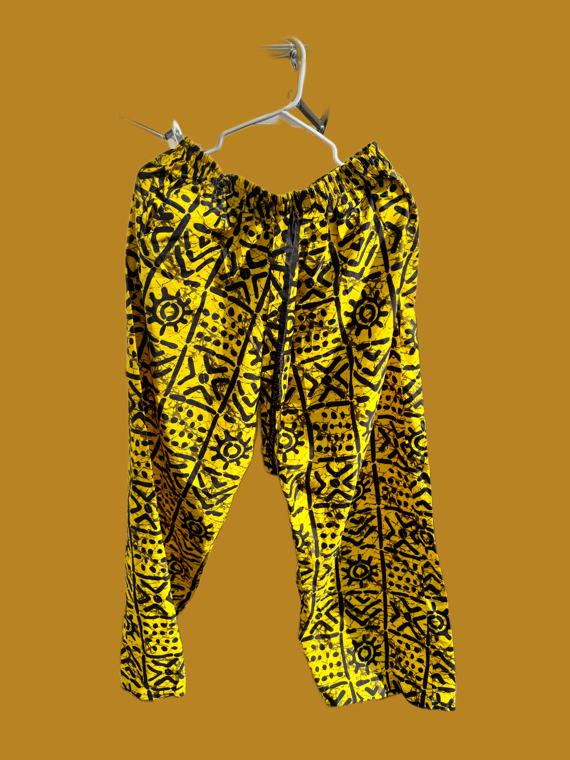 Oversize ANKARA printed pants. Available in yellow and in pink. Light tissue.